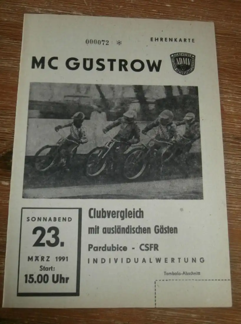 Speedway Güstrow 23.03.1991 , Pardubice , Programm , Rennprogramm !!!