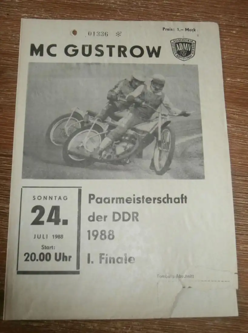 Speedway Güstrow 24.07.1988 , Finale DDR Paarmeisterschaft , Programm , Rennprogramm !!! Weitere Programmhefte in meinen anderen Auktionen!