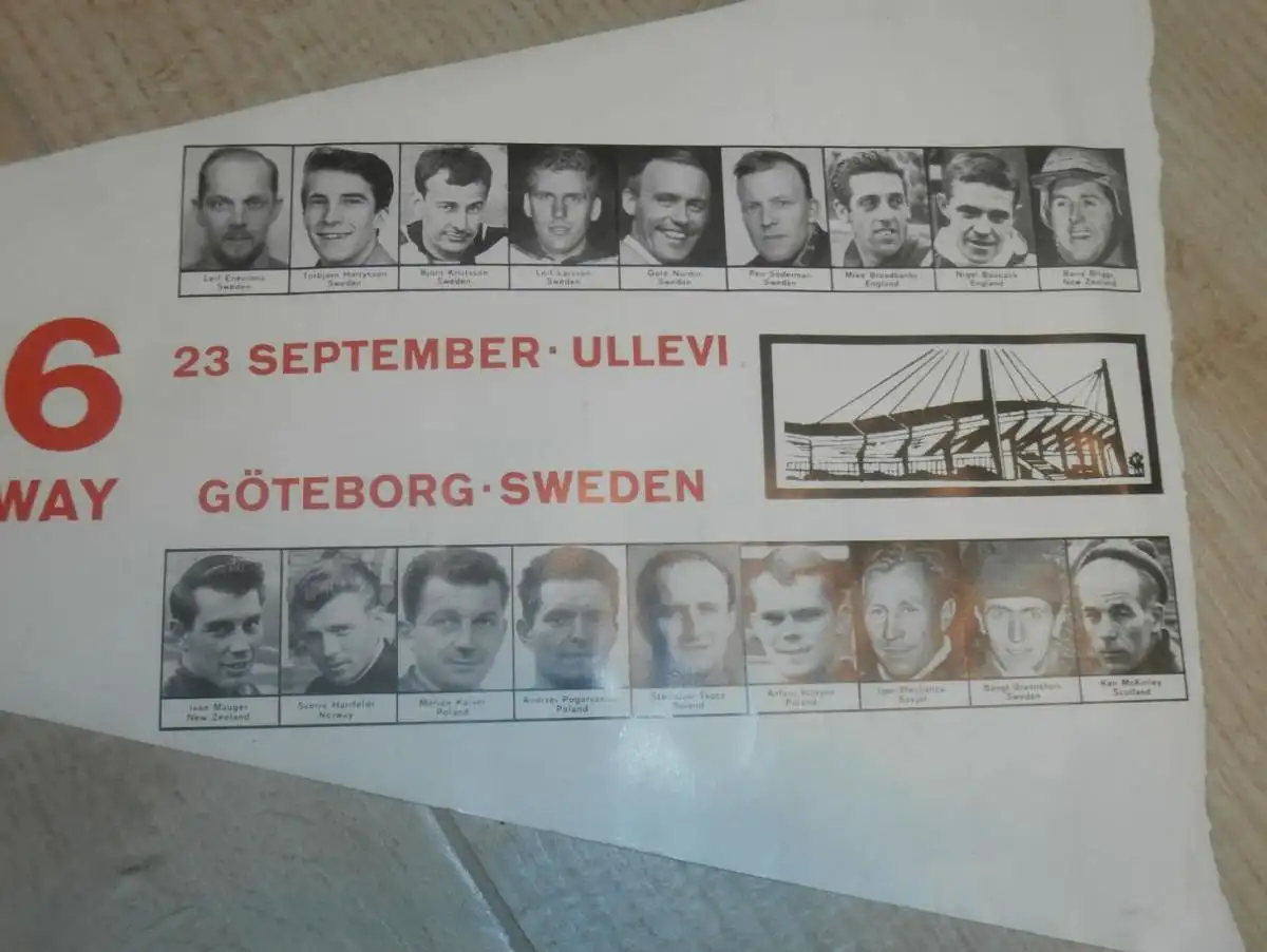 Speedway Wimpel , WM Finale 23.9.1966 in Göteborg , mit Fahrern , Motorsport !!
