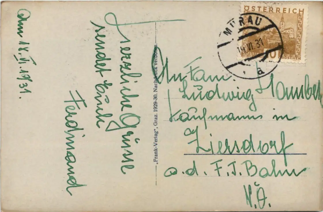 Danke. Alles Bestens. Können Sie mir allenfalls mitteilen, aus welchem Jahr die Postkarte stammt? Besten Dank.