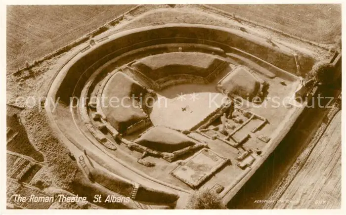 St_Albans Roman Theatre aerial view St_Albans postalisch nicht gelaufen 1954 Erhaltung siehe scans [FriedD77] Frierer