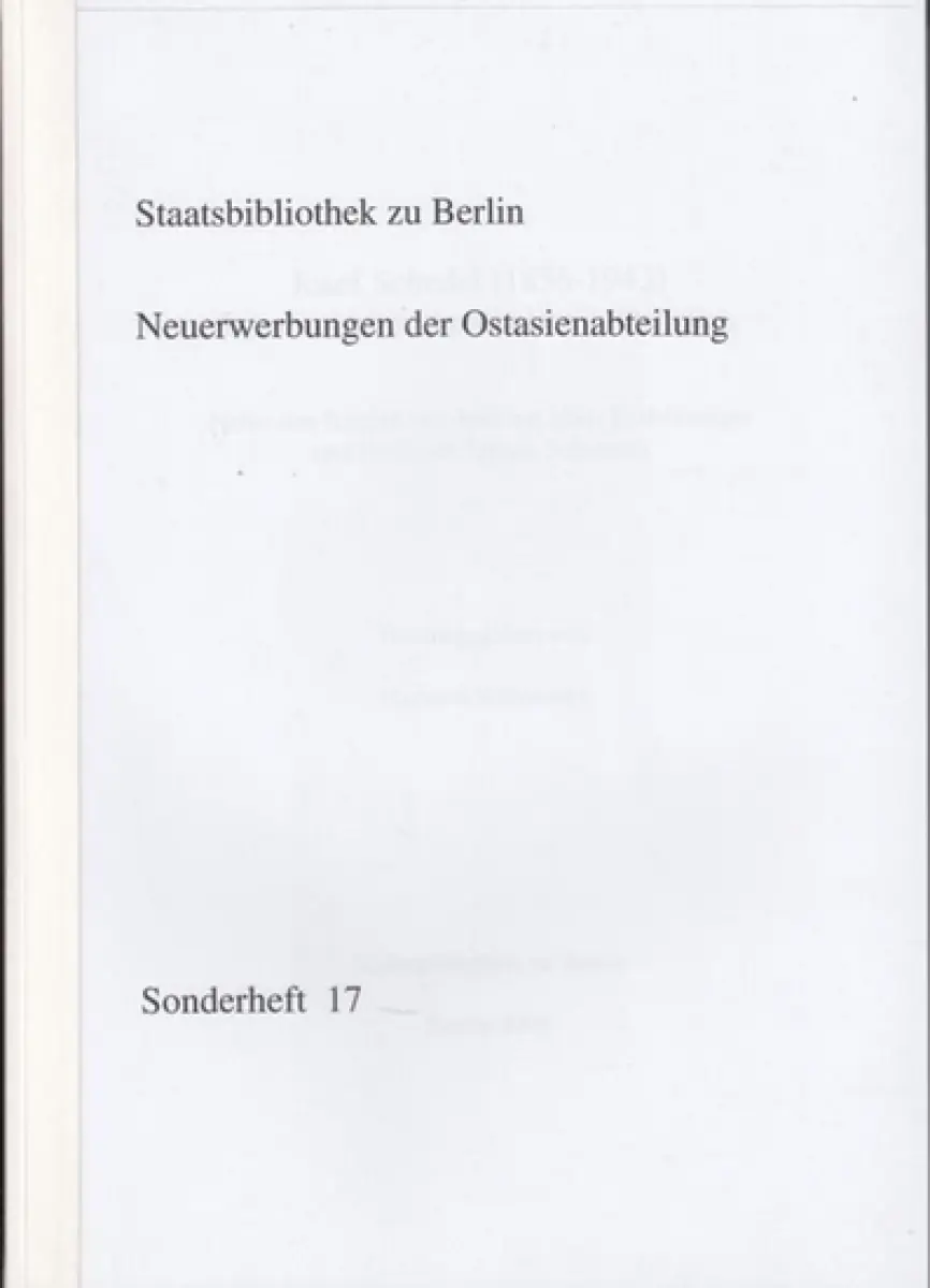Titel: Josef Schedel (1856 - 1943) - ein deutscher Apotheker in Ostasien. Nebst den Briefen von Justizrat Hans Rudelsberger und Professor Lucian Scherman ( = Staatsbibliothek zu Berlin - Neuerwerbungen der Ostasienabteilung, Sonderheft 17 ).