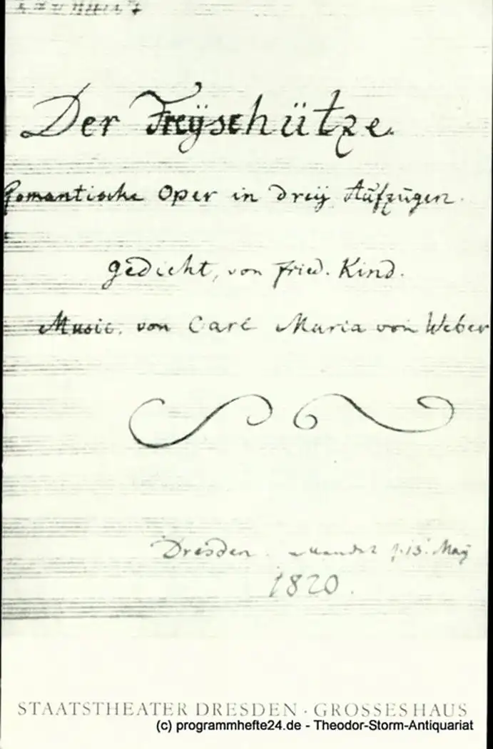 Musik: Carl Maria von Weber. Inszenierung: Erhard Fischer. Mitwirkende: Rolf Haunstein, Günter Dreßler, Jana Smitkova, Gabriele Auenmüller, Hajo Müller, Reiner Goldberg, Fred Teschler, Jürgen Hartfiel, u.a. - Theaterprogramm, Opernprogramm, Ballettprogramm, Musicalprogramm, Konzertprogramm, Theatermemorabilia, Programmhefte Sammlung, deutsche Theatergeschichte.