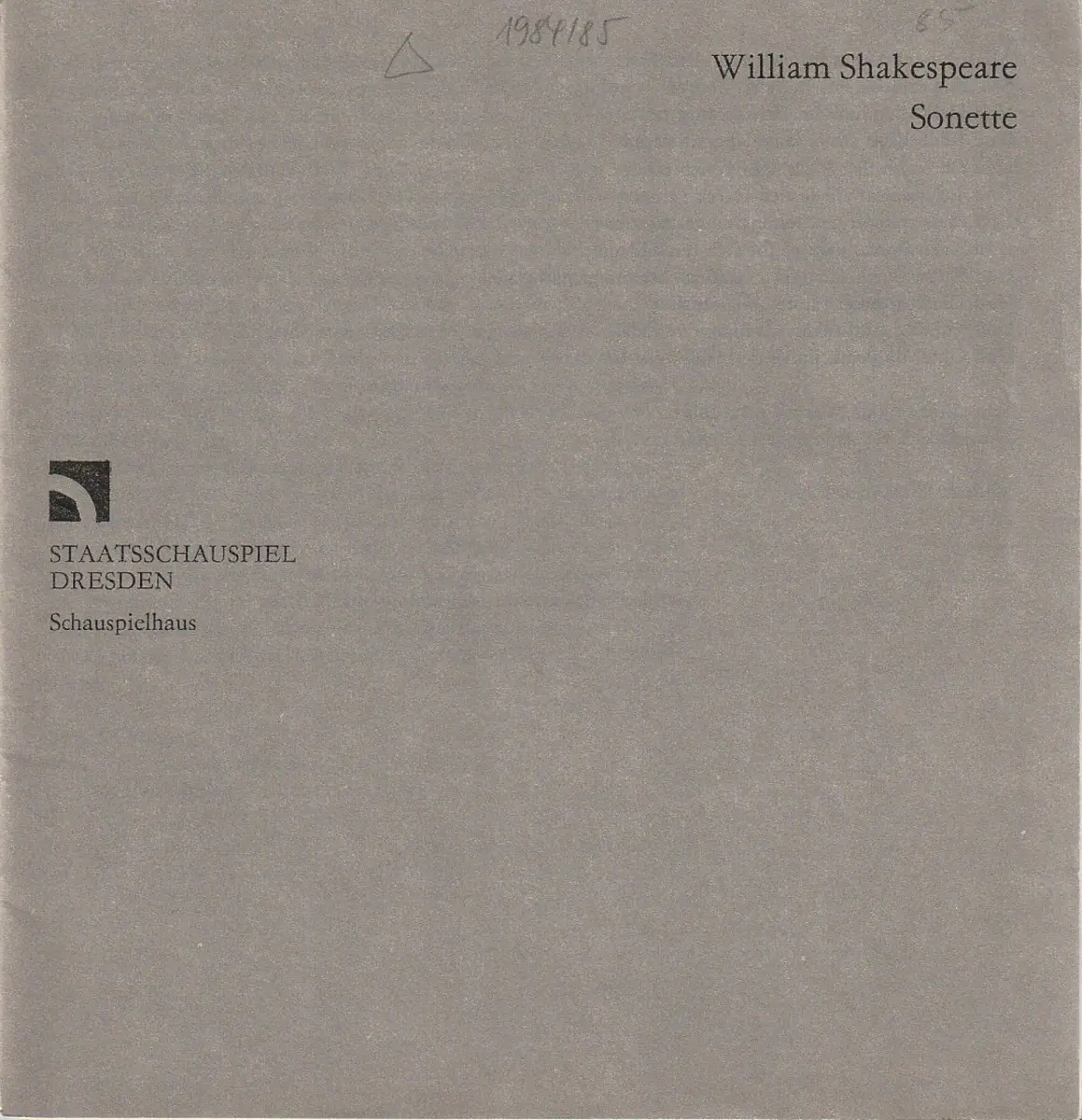 Staatsschauspiel Dresden, Schauspielhaus, Gerhard Wolfram, Heike Müller-Merten: Programmheft William Shakespeare SONETTE Premiere 8. Januar 1985 Werkstatt Schauspielhaus.