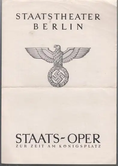 Staatstheater Berlin. - Staats - Oper am Königsplatz. - Giacomo Puccini: Tosca. Programmzettel zur Aufführung am Sonntag, 4. Januar 1942. Mitwirkende: Viorica Ursuleac, Helge Roswaenge, Robert Burg, Karl August Neumann, Margery Booth u. a. Musikalische Le