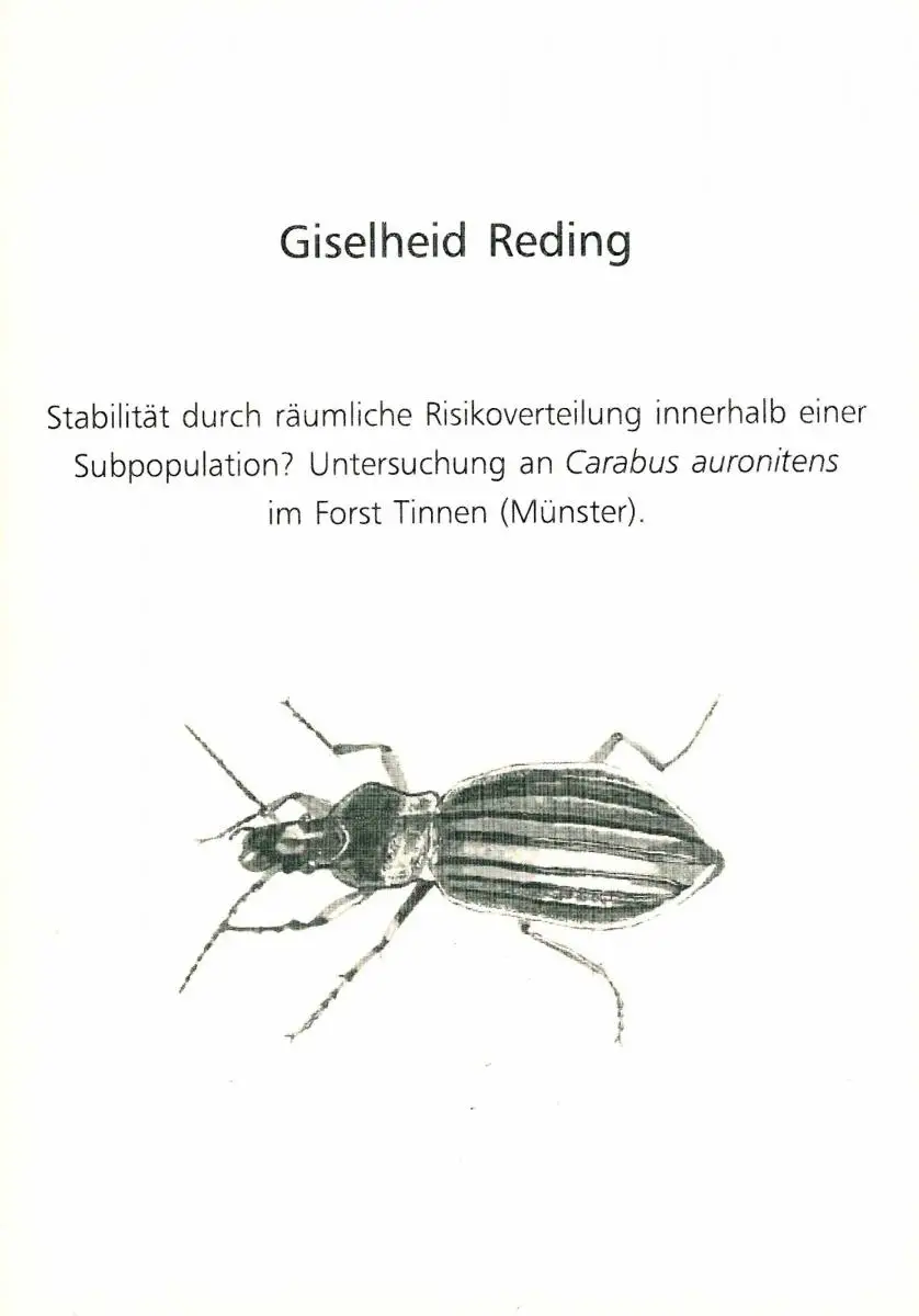 Stabilität durch räumliche Risikoverteilung innerhalb einer Subpopulation? Untersuchung an Carabus auronitens im Forst Tinnen (Münster) '(ACHTUNG: Titel ist vergriffen - wir drucken für Sie nach!).