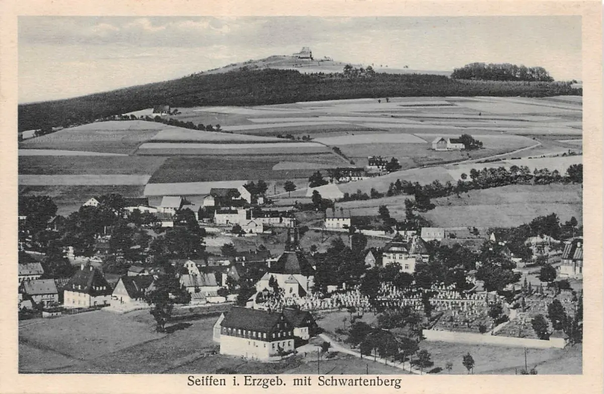 Stadtansicht Seiffen mit Schwartenberg Erzgebirge Sachsen Postkarte