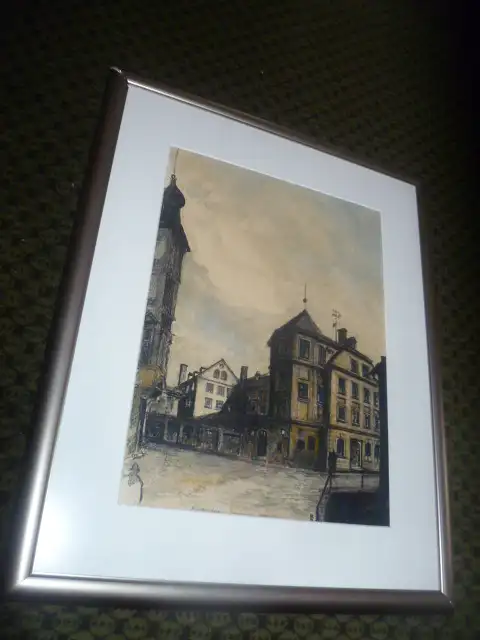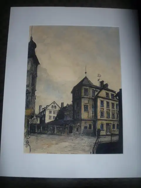 "Stadtmühle in Reichenberg" Franz Josef Straße Erwin Müller 1893-1978 Mischtechnik