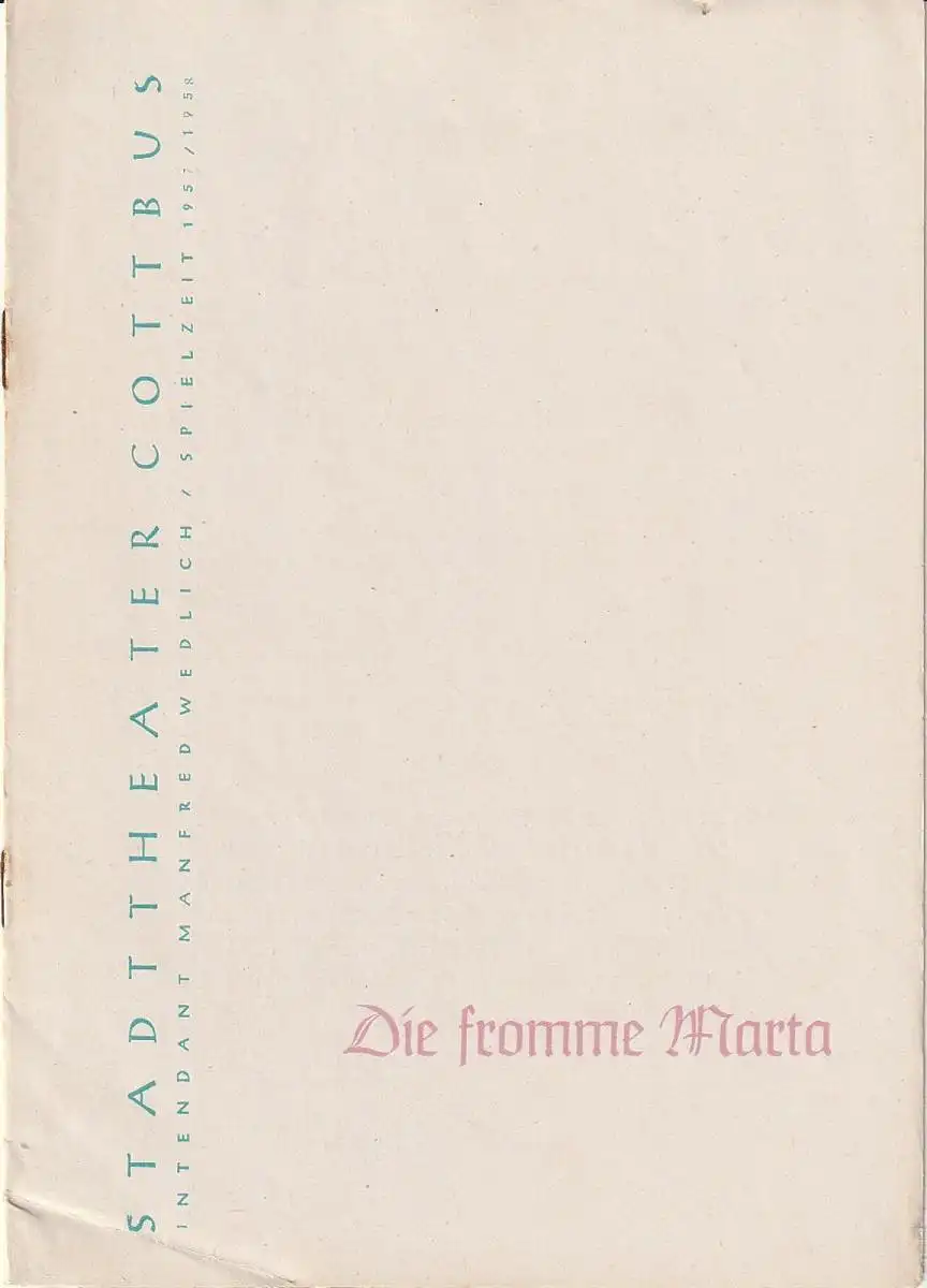 Stadttheater Cottbus, Manfred Wedlich, R. Freiesleben, Walter Böhm: Programmheft Tirso de Molina DIE FROMME MARTA Spielzeit 1958 / 59 Heft 12.