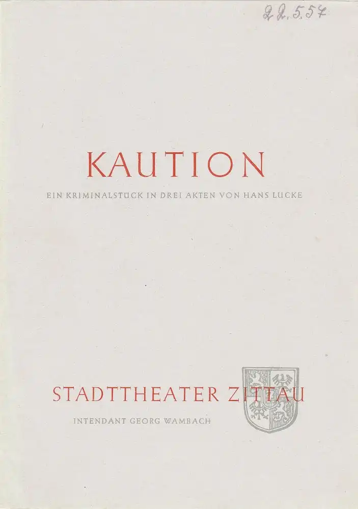 Stadttheater Zittau,Georg Wambach, Hubertus Methe: Programmheft Hans Lucke KAUTION Spielzeit 1956 / 57 Heft 18.