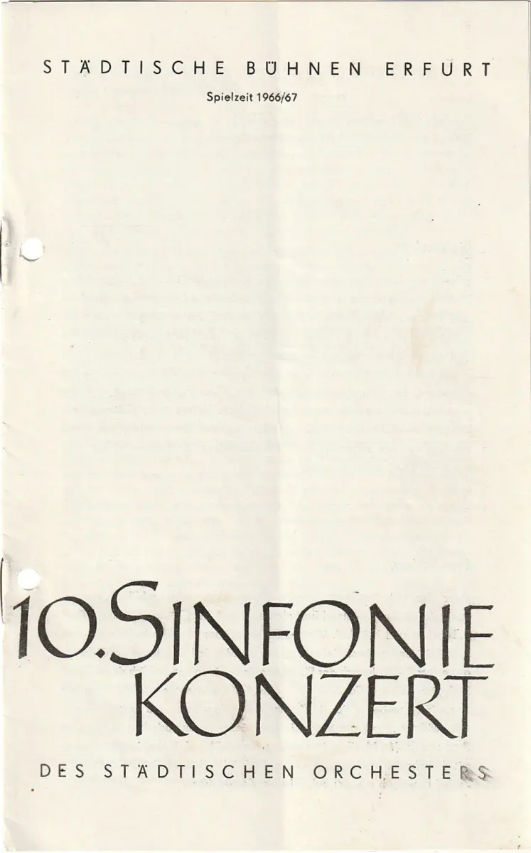 Titel: Programmheft 10. SINFONIEKONZERT DES STÄDTISCHEN ORCHESTERS ERFURT 15. Juni 1967 Spielzeit 1966 / 67