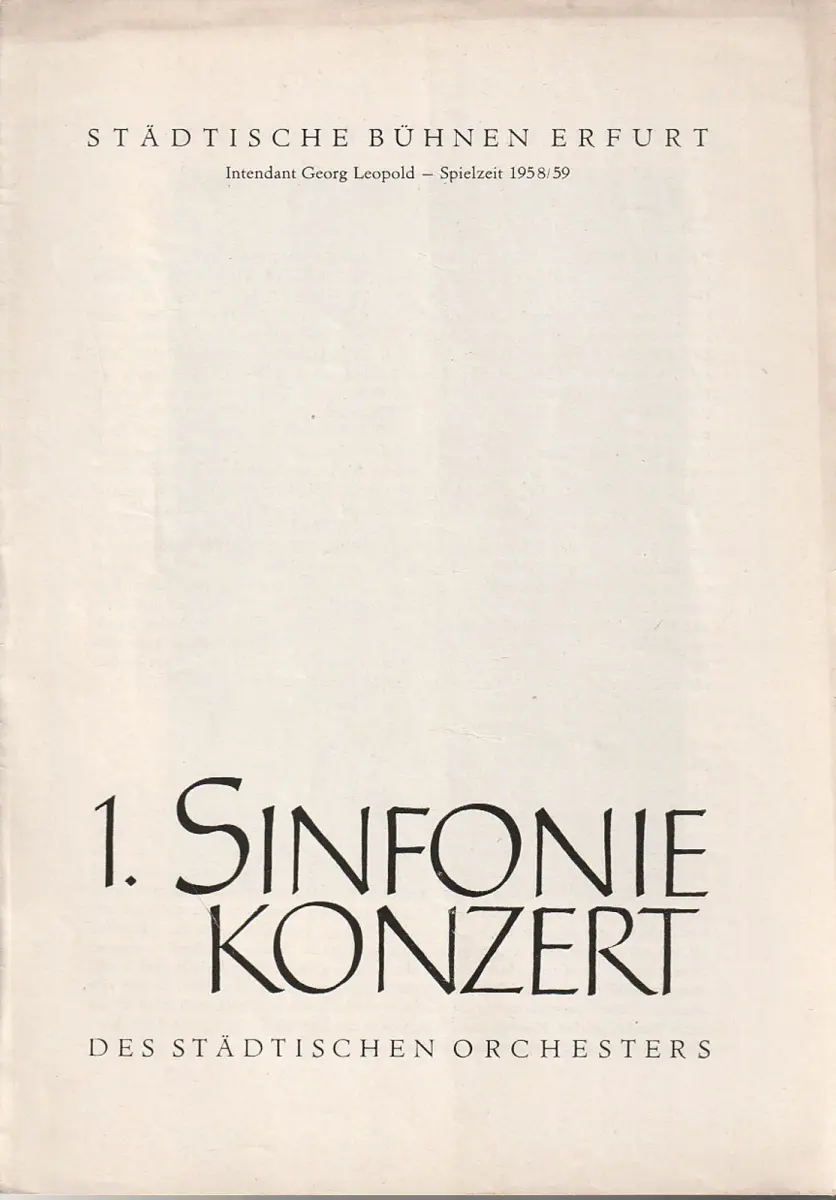Städtische Bühnen Erfurt, Georg Leopold, Ilse Winter: Programmheft 1. SINFONIEKONZERT DES STÄDTISCHEN ORCHESTERS ERFURT 3.+ 4.Oktober 1958 Spielzeit 1958 / 59.