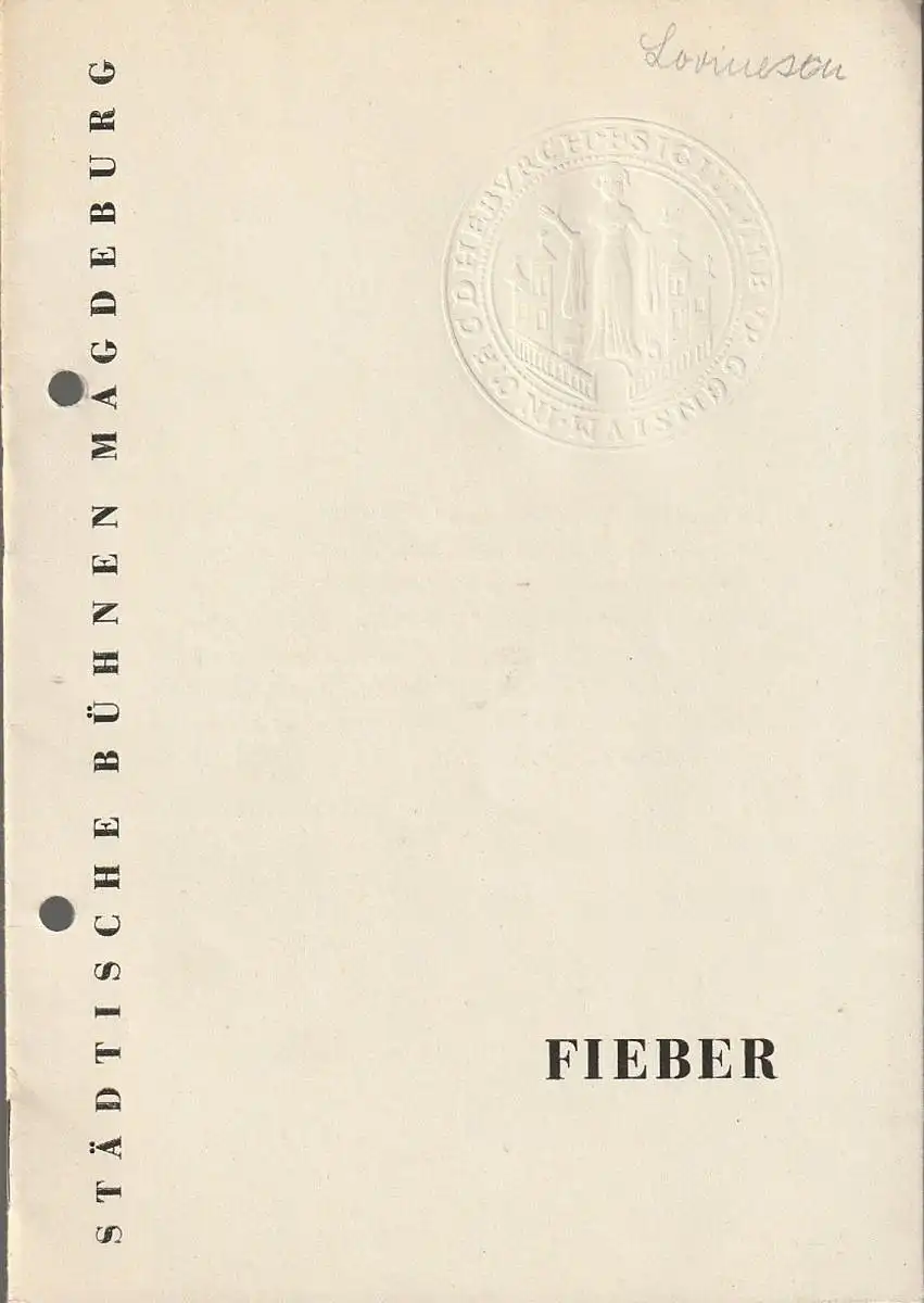 Städtische Bühnen Magdeburg, Heinz Isterheil, Karl-Heinz Hafranke: Programmheft Horia Lovinescu FIEBER Deutsche Erstaufführung Premiere 30. Juni 1963 Spielzeit 1962 / 63 Heft 17.