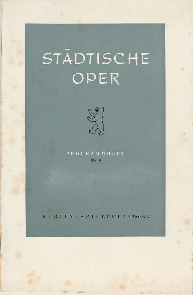 Enthält auch Beiträge zu Richard Strauß. Musikalische Leitung: Wolfgang Martin. Inszenierung: Adolf Rott. Bühne und Kostüme: Robert Kautsky. Mitwirkende: Walter Geisler, Helene Werth, Tomislav Neralic, Anton Metternich, Leopold Calm, Rolf Böttcher, Hanns Pick, Roland-Dietrich Kunz, Alice Oelke - Theaterprogramm, Opernprogramm, Ballettprogramm, Musicalprogramm, Konzertprogramm, Theatermemorabilia, Programmhefte Sammlung, deutsche Theatergeschichte.