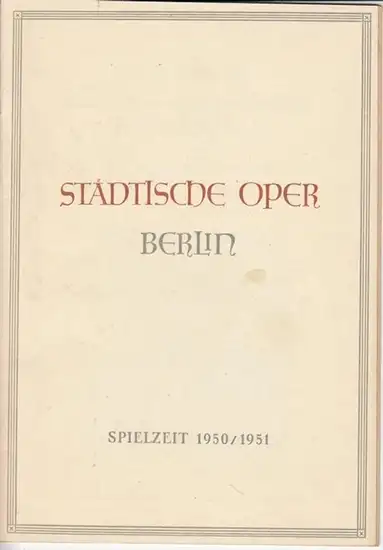 Städtische Oper Berlin. - Richard Wagner: Spielzeit 1950/51, Programmheft zu: Tannhäuser. - Aufführung am 30. Oktober 1950. - musikalische Leitung: Leopold Ludwig / Inszenierung: Heinz Tietjen / Bühnenbild und Kostüm: Emil Preetorius / mit Gottlob Frick,