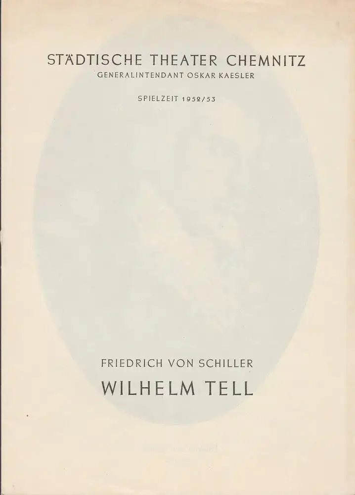 Städtische Theater Chemnitz, Oskar Kaesler, Hans Müller: Programmheft Friedrich von Schiller WILHELM TELL Spielzeit 1952 / 53.