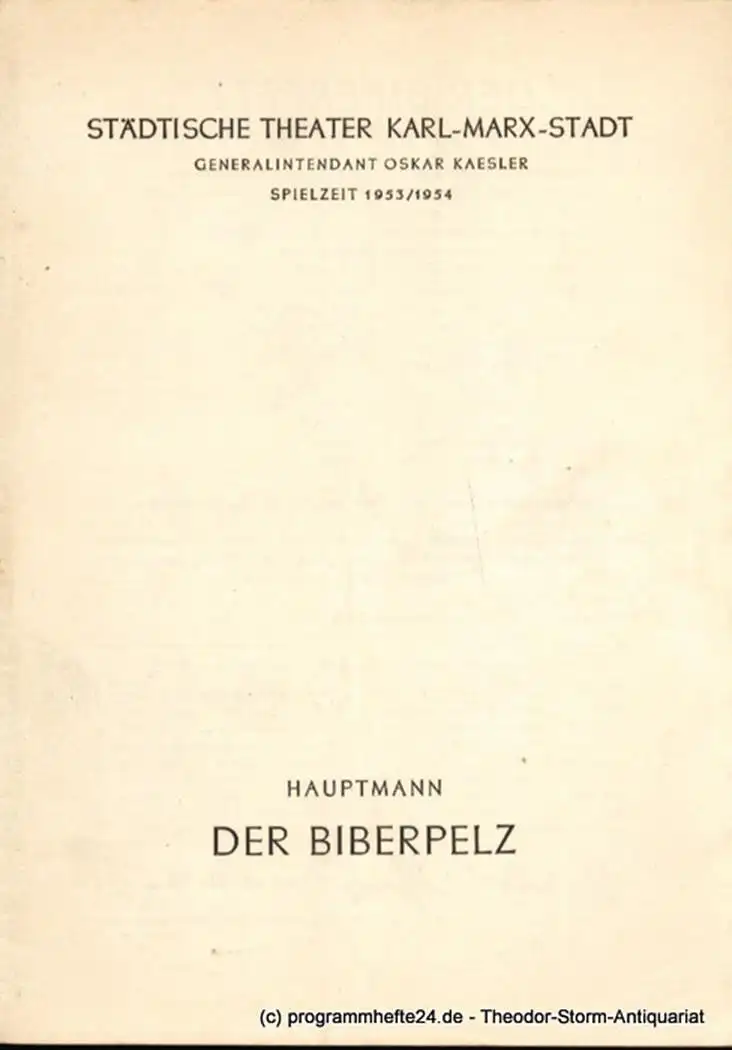 Städtische Theater Karl-Marx-Stadt, Oskar Kaesler, Ebermann Wolf: Programmheft Gerhart Hauptmann Der Biberpelz Spielzeit 1953 / 1954.