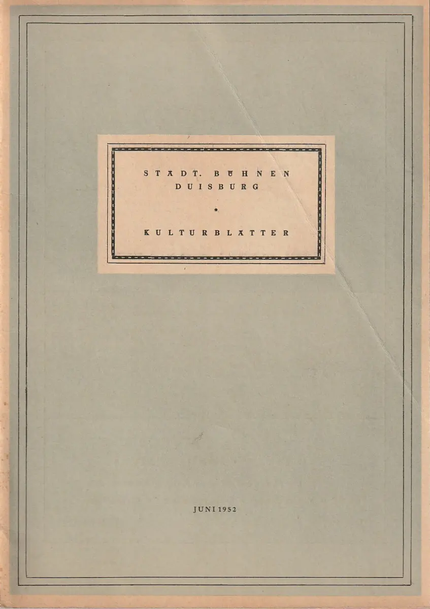 Titel: KULTURBLÄTTER Städtische Bühnen Duisburg JUNI 1952 Heft 9