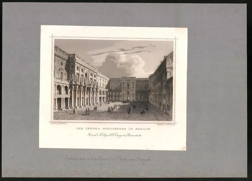 Stahlstich Berlin, Der innere Schlosshof, montiert, um 1870, gez.: C. Würbs, Stich: J. M. Kolb, 22.5 x 31.5cm