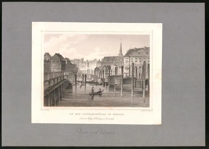 Stahlstich Berlin, Partie an der Fischerbrücke, montiert, um 1870, gez.: C. Würbs, Stich: L. Rohbock, 22.5 x 31.5cm