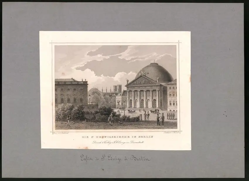 Stahlstich Berlin, St. Hedwigskirche, montiert, um 1870, gez.: L. Rohbock, Stich: J. M. Kolb, 22.5 x 31.5cm