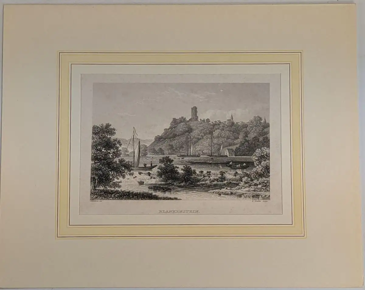 Bemerkungen: Zustand: Gut. Die Grafik ist altersbedingt minimal gebräunt und Ränder leicht berieben // Es handelt sich um einen Stahlstich mit einem Maß von 11,5 x 15,0 cm. Die Grafik befindet sich in einem Passepartout und ist mittig, unterhalb des Motives betitelt. Der Stahlstich ist ein grafisches Druckverfahren, das im 19. Jahrhundert vor allem für hochwertige Drucke wie Banknoten, Briefmarken, Urkunden und Illustrationen verwendet wurde. Es handelt sich dabei um eine spezielle Form des Tiefdrucks, bei dem das Druckbild in eine Stahlplatte graviert wird.
