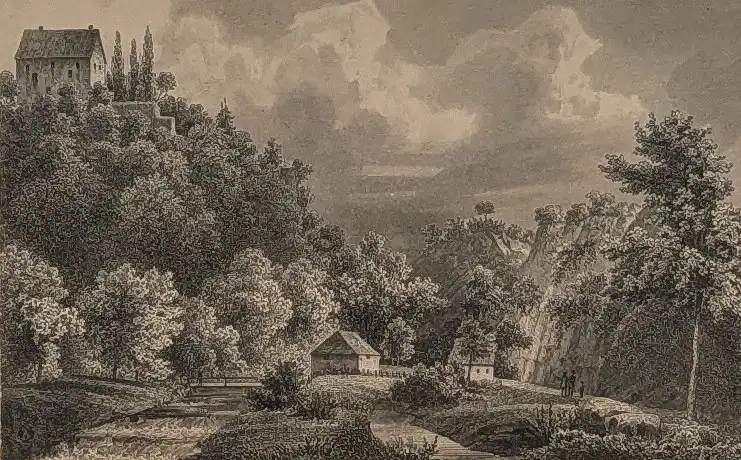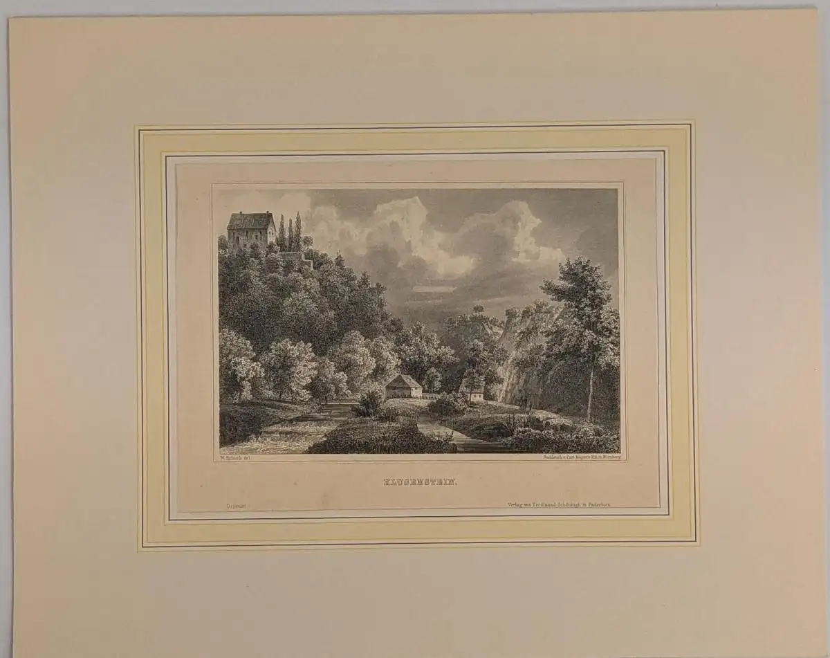 Bemerkungen: Zustand: Gut. Die Grafik ist altersbedingt minimal gebräunt und Ränder leicht berieben // Es handelt sich um einen Stahlstich mit einem Maß von 10,5 x 15,5 cm. Die Grafik befindet sich in einem Passepartout und ist mittig, unterhalb des Motives betitelt. Der Stahlstich ist ein grafisches Druckverfahren, das im 19. Jahrhundert vor allem für hochwertige Drucke wie Banknoten, Briefmarken, Urkunden und Illustrationen verwendet wurde. Es handelt sich dabei um eine spezielle Form des Tiefdrucks, bei dem das Druckbild in eine Stahlplatte graviert wird.