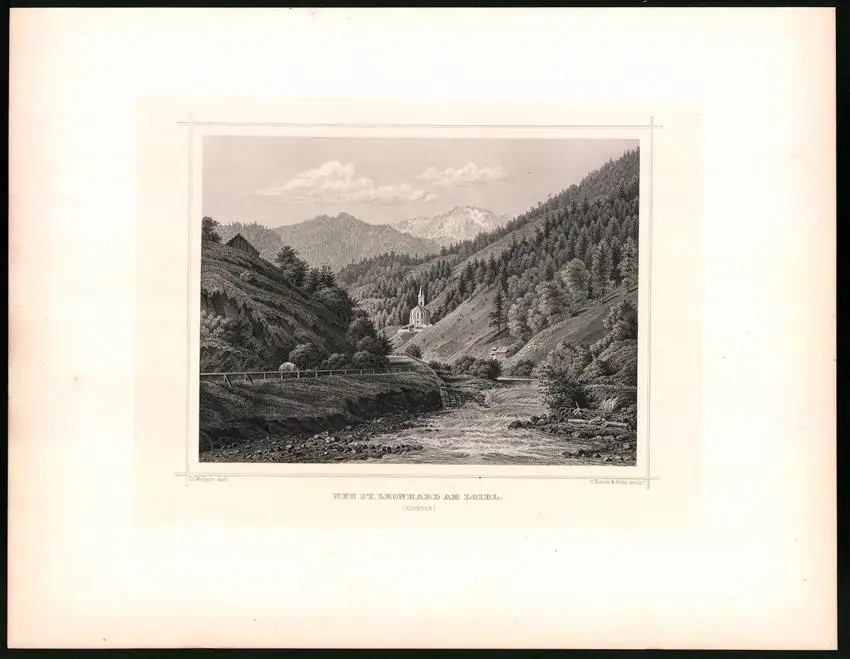 Stahlstich Neu St. Leonhard am Loibl, Stahlstich um 1870 aus Ruthner Kaiserthum Österreich, 32 x 25cm