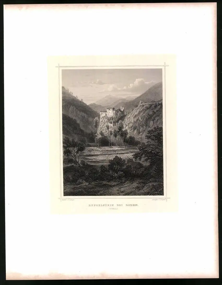 Stahlstich Rungelstein bei Bozen, Stahlstich um 1870 aus Ruthner Kaiserthum Österreich, 32 x 25cm
