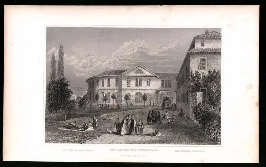Stahlstich Schinznach, Frauen mit ihren Kindern bei den Bädern, Stahlstich um 1835 von Henry Winkles, 22.5 x 14cm