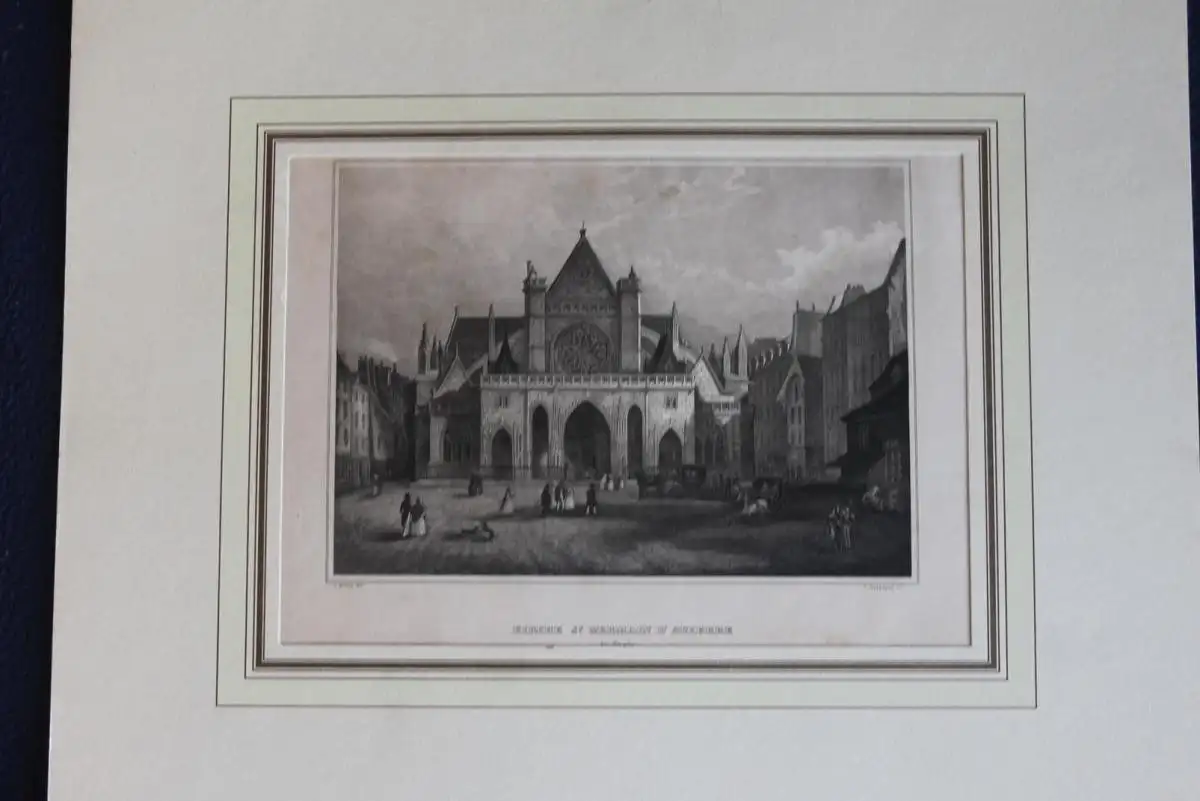 Stahlstich des BI Hildburghausen: Kirche St.Germain d Auxerre; Paris; ca. 1837
