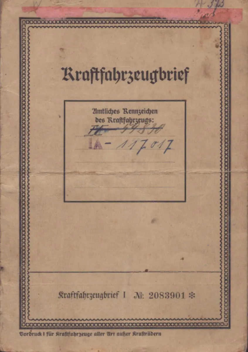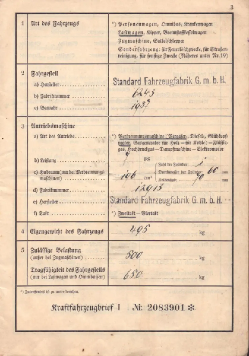 Standard 196 ccm Lastwagen Original Fahrzeugbrief 1937