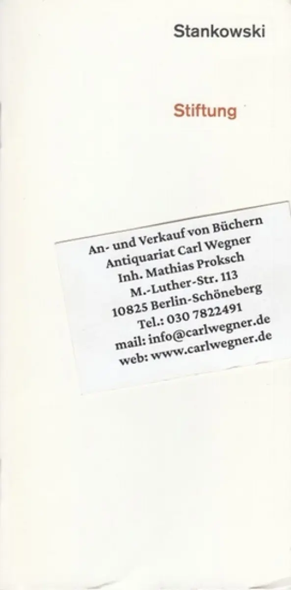 Stankowski-Stiftung. - Anton Stankowski. - mit Beiträgen von Karl Duschek u. a: Stankowski Stiftung.