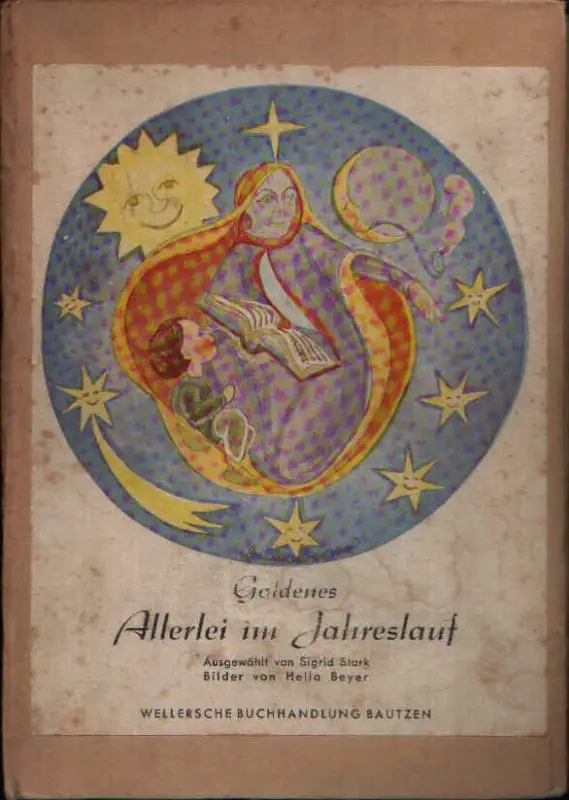 Stark, Sigrid; Goldenes Allerlei im Jahreslauf; Märchen; Erzählungen; Wenn der Frühling kommt; Die sieben Raben; Wie die Maiblümchen in den Wald kamen; Der Wolf und die sieben jungen Geißlein; Das Märchen vom Maulwurf; Goldtöchterchen; Sommerlied; Das Abenteuer im Walde; Hänsel und Gretel; Wie die Mieze klettern lernte; Rotkäppchen; Die kleinen Mädchen tanzen und singen; Der Herbst; Die Sonnenblume; Frau Hütt in Tirol; Der arme Müllerbursch und das Kätzchen; Dornröschen; Die traurige Geschichte vom dummen Hänschen; Vom klugen Schneiderlein; Rumpelstilzchen; Das Märchen vom Mann im Monde; Ein Wintertag; Die Sterntaler; Rätsel; Frau Holle; Schneewittchen; Weihnachtslegende; Die Himmelsbrieflein