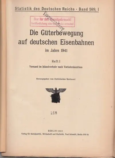Statistik des Deutschen Reichs. / Statistisches Reichsamt: Die Güterbewegung auf deutschen Eisenbahnen im Jahre 1941 (Heft I).