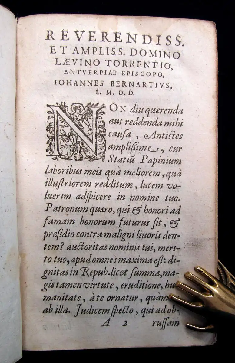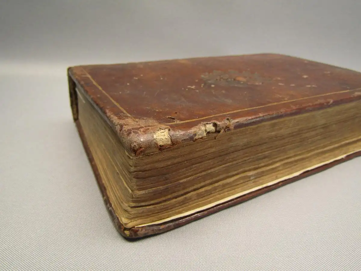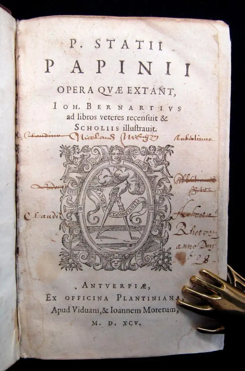 Einband berieben und etwas bestoßen, Papier gebräunt, teils etwas fleckig, letzte Seite feuchtrandig. Titel, Vorsatz und einige Seiten mit alten hs. Notizen und Namenszug. Schöne, seltene Plantin Ausgabe. Bilder sind ein Bestandteil der Zustandbeschreibung. Zustand wurde bereits im Preis berücksichtigt.
