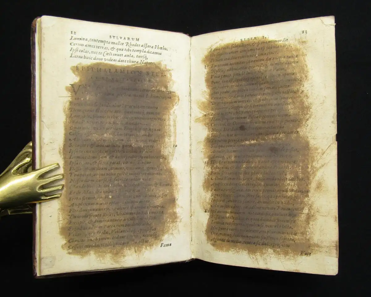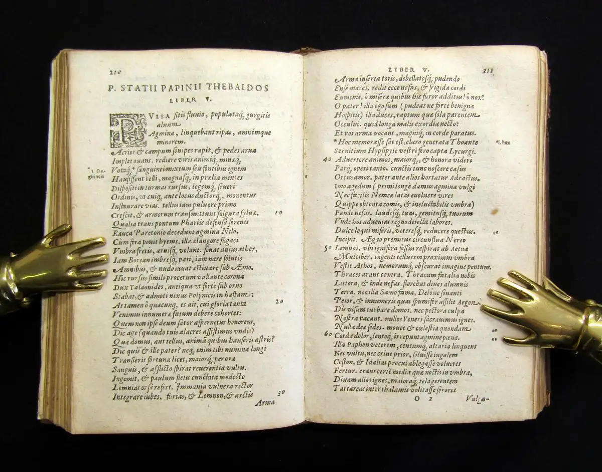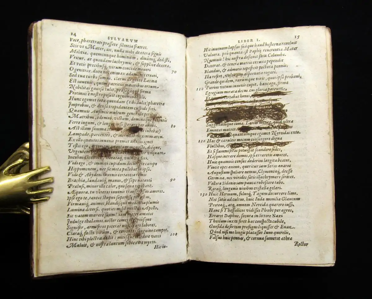 Einband berieben und etwas bestoßen, Papier gebräunt, teils etwas fleckig, letzte Seite feuchtrandig. Titel, Vorsatz und einige Seiten mit alten hs. Notizen und Namenszug. Schöne, seltene Plantin Ausgabe. Bilder sind ein Bestandteil der Zustandbeschreibung. Zustand wurde bereits im Preis berücksichtigt.