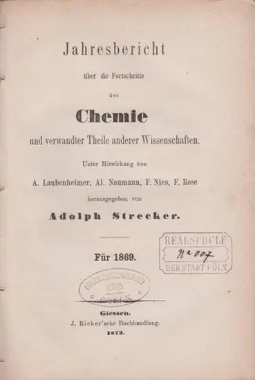 Stecker, Adolph ua.(Hrsg.): Jahresbericht über die Fortschritte der Chemie und verwandter Theile anderer Wissenschaften. Für 1869.