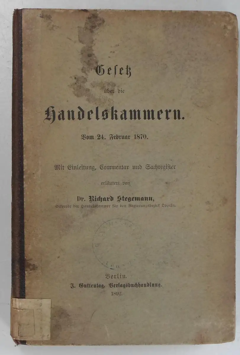 Stegemann, Richard: Gesetz über die Handelskammern. Vom 24. Februar 1870. Mit Einleitung, Commentar und Sachregister.