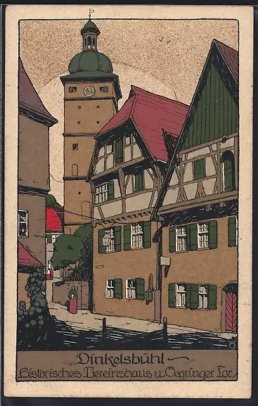 Steindruck-AK Dinkelsbühl, Historisches Vereinshaus und Segringer Tor