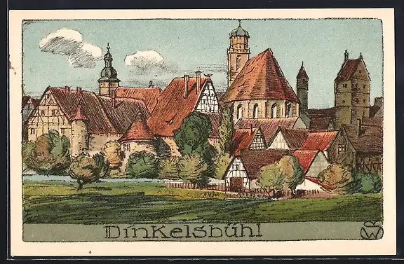 Steindruck-AK Dinkelsbühl, Ortsansicht