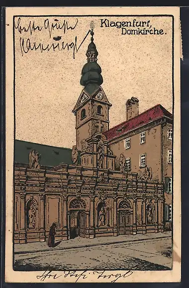 Steindruck-AK Klagenfurt, Partie bei der Domkirche