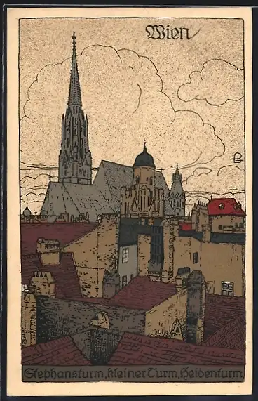 Steindruck-AK Wien, Stephansturm, Kleiner Turm, Heidenturm