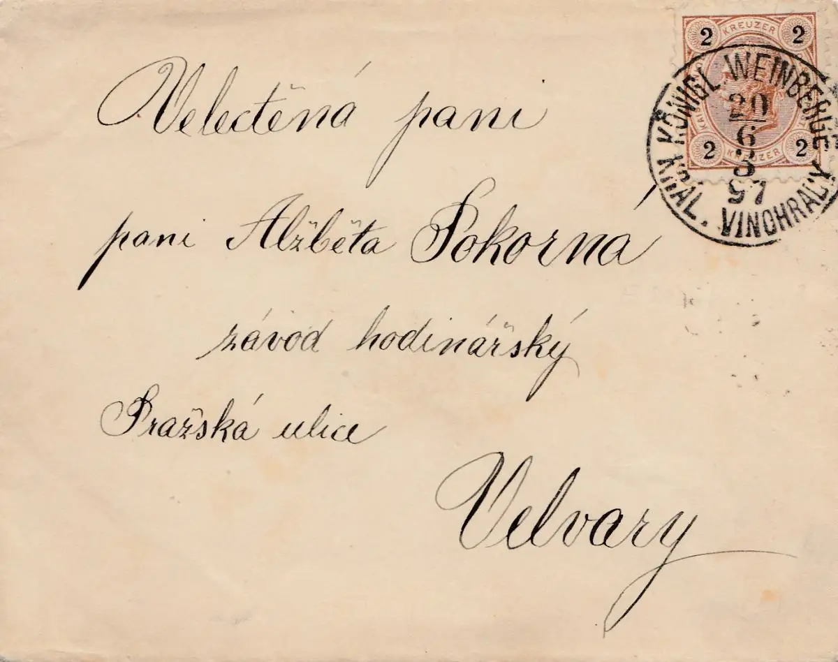 Timbre: Vignobles royaux 1897 Kral. Vinohracy d'après Velvary