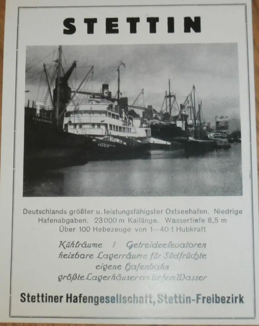 Stettiner Hafengesellschaft - original Reklame aus Zeitschrift , Stettin , Schiffe , Hafen , Pommern !!!AZ-WR/1p