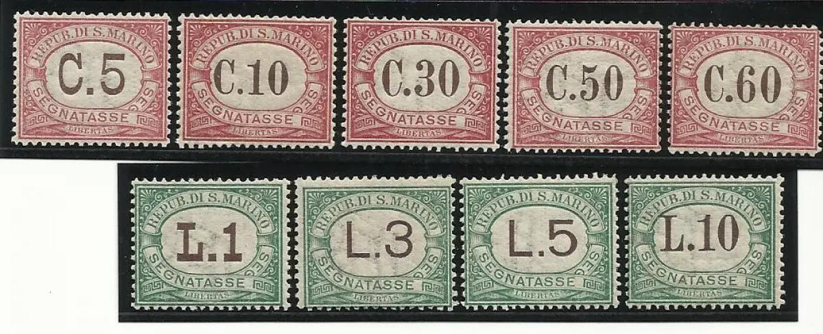 Steuermarken komplette Serie sehr frisch mit sehr guter Zentrierung Mit Linguella Spur - Steuermarken Nr. 10/18 sehr frische komplette Serie mit sehr guter Zentrierung und leichten Linguella-Spuren - Kat. euro 700 Code 701/7