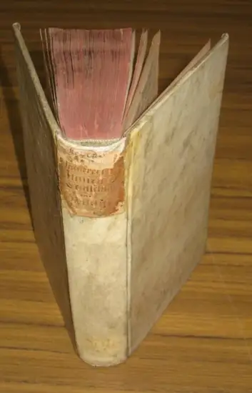 Freie Beschreibung: 16,9:10,3 cm. Pergamentband der Zeit mit handschriftlichem Rückentitel. Das Pergament mit den ihm üblichen Farbschwankungen und etwas angestaubt. Dreiseitenrotschnitt. Vorbesitzereintrag Eberhard Christian Wilhelm Schauroth auf dem vorderen Vorsatz. (14), 464 Seiten. Titelblatt und Druckbereich etwas gebräunt, im Innenbereich auch braunfleckig. Fest im Block. Durchaus gutes Exemplar