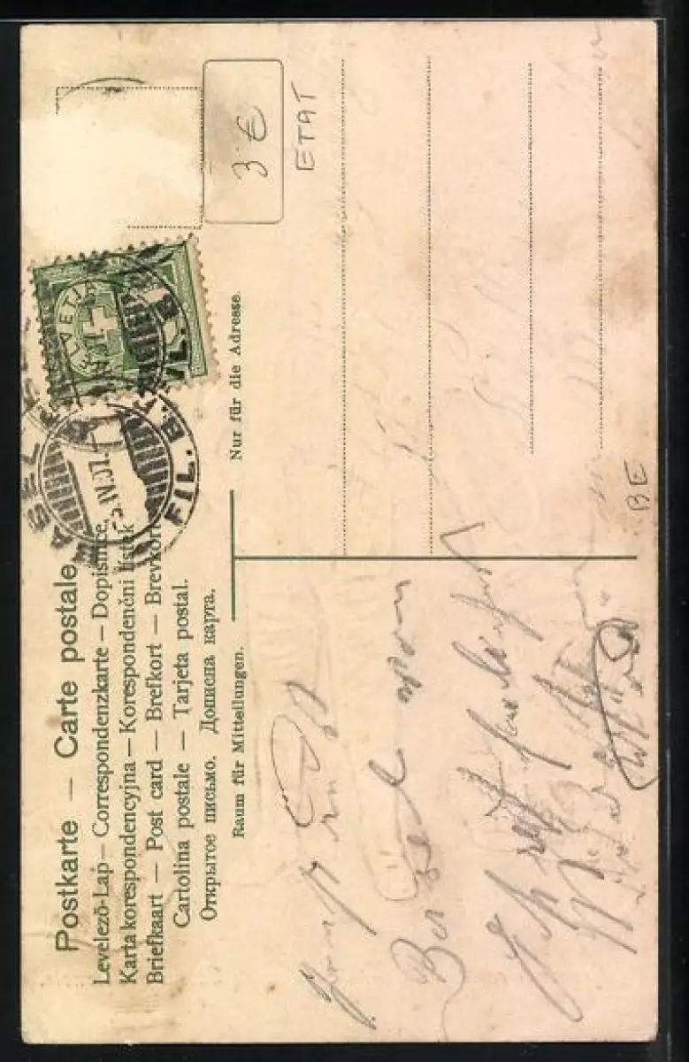 alte Ansichtskarte, gelaufen 1907, Briefmarke entfernt, rückseitig Oberflächenschaden, guter Zustand