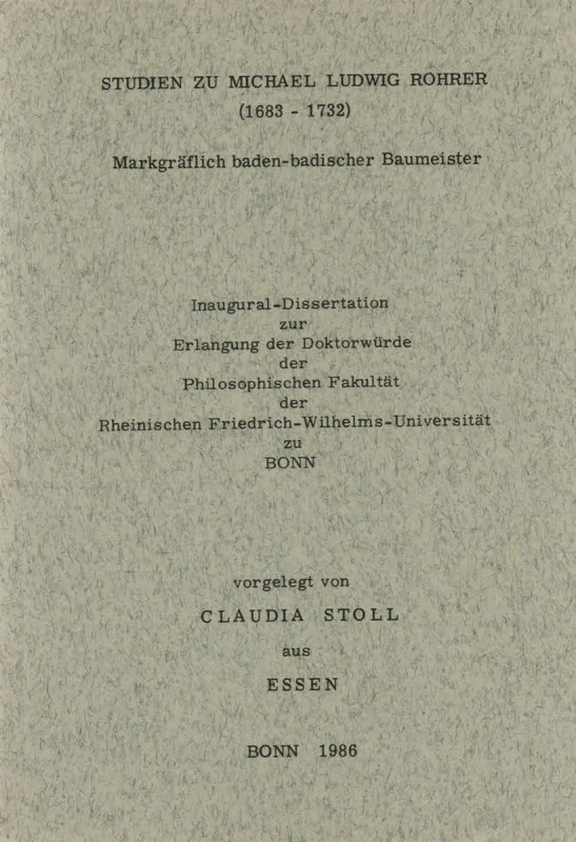 Stoll, Claudia: Studien zu Michael Ludwig Rohrer (1683 - 1732), markgräflich baden-badischer Baumeister. (Dissertation).