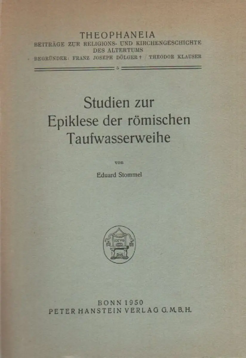 Stommel, Eduard: Studien zur Epiklese der römischen Taufwasserweihe. (Theophaneia ; 5).
